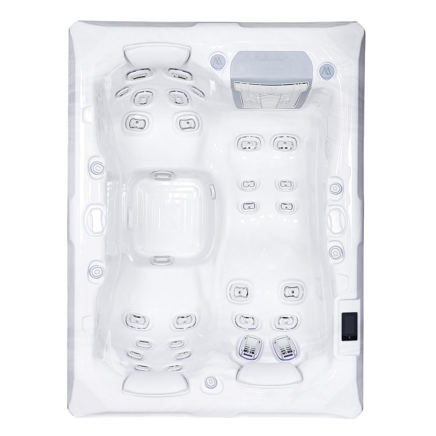 Máximo aislamiento térmico, mínimo consumo de energía. Los paneles aislantes instalados sin costuras y las bolsas de aire de la placa base retienen eficazmente la temperatura del agua, evitando la pérdida de calor. La lámina termorreflectante interna refleja el calor generado por los motores de masaje, acelerando el proceso de calentamiento del agua. Experimente un confort y una eficacia inigualables.